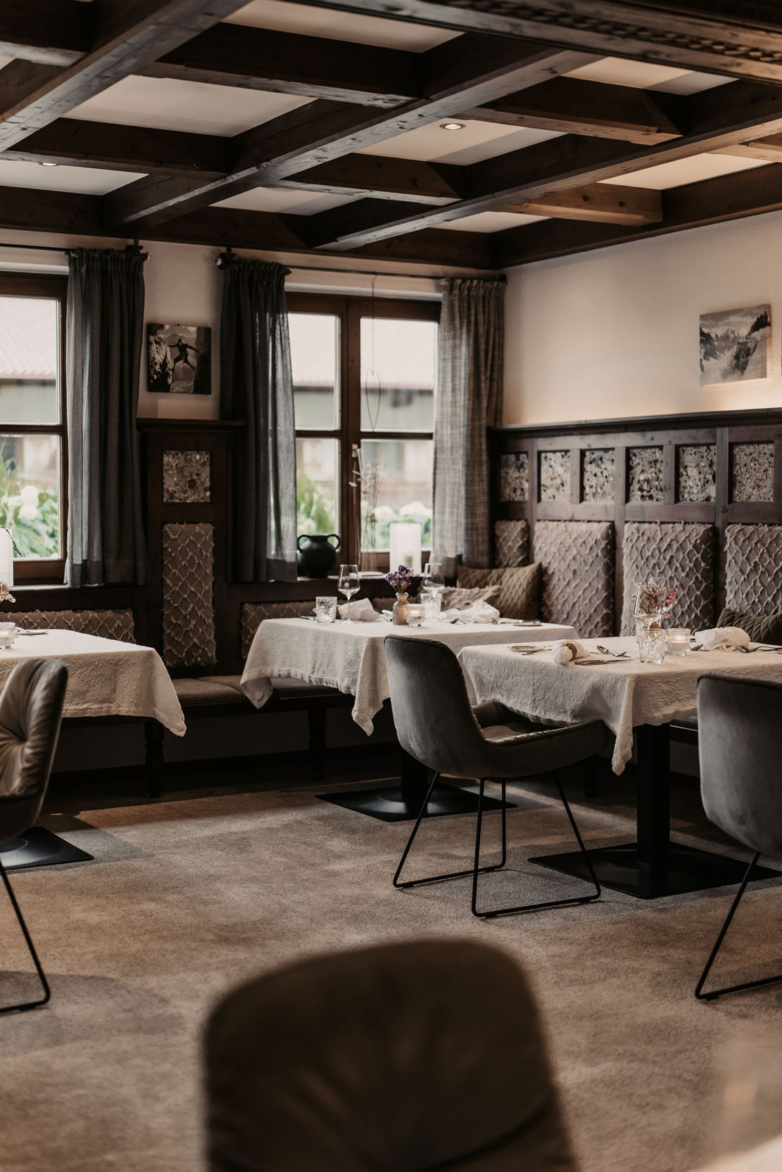 Alpine delicacies, regional specialties, and internationally inspired dishes come together in our restaurant. From relaxed snacks on the terrace to creative evening menus, the quality of local ingredients is always paramount. Whether enjoying a light lunch in the sun, an aperitif overlooking the pool, or a sumptuous dinner with mountain views, each setting at the Sonnhof has its own distinct culinary character.